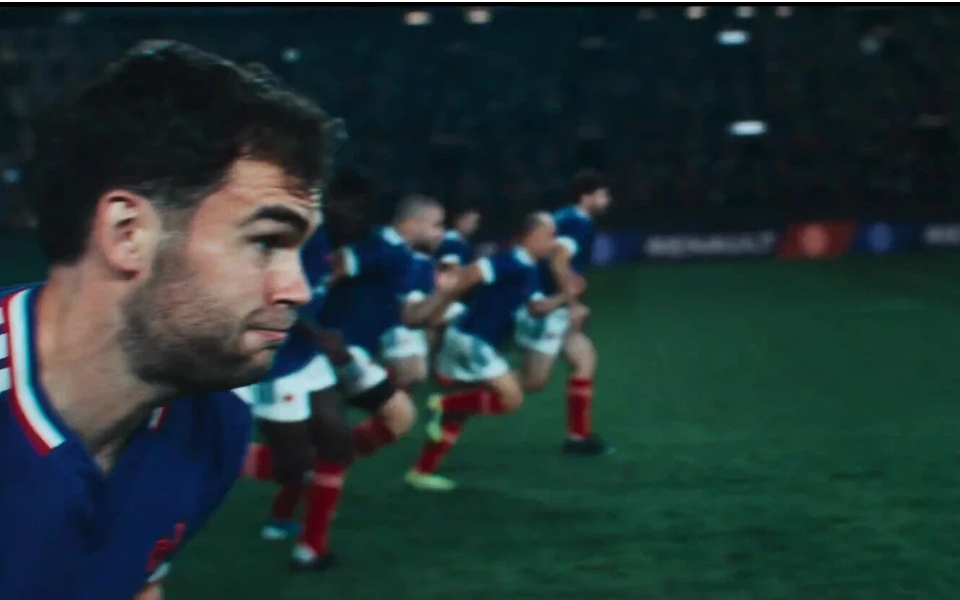 雷诺与法国国家橄榄球队,在紧张激烈的体育影片中庆祝愿景